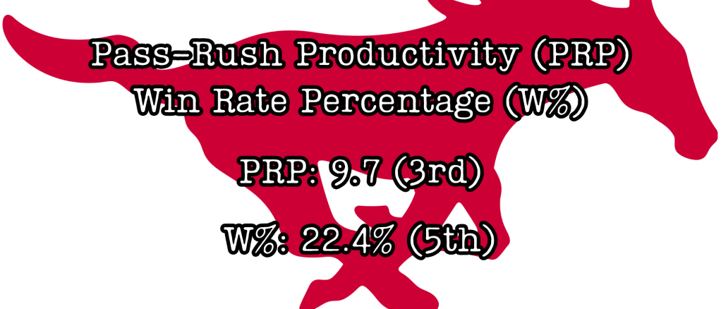 These are two more stats pulled from PFF premium stats archives. Pass-Rush Productivity (PRP) is a pretty simple forumla: